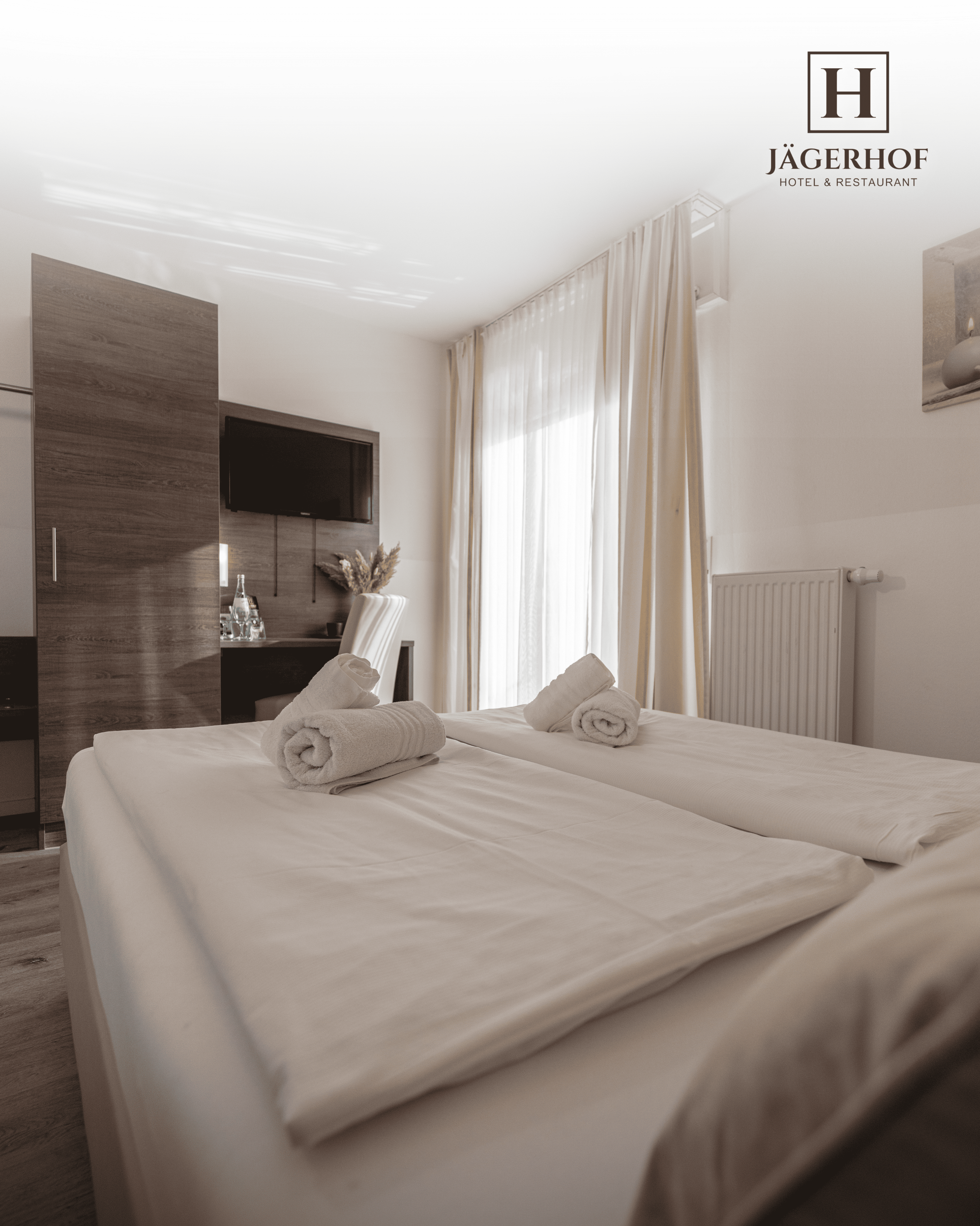 Unsere modern ausgestatteten Einzel- und Doppelzimmer verfügen über ein eigenes Bad, einen Flachbild-TV, Satellitenempfang und kostenfreies WLAN. Nach einer erholsamen Nacht starten Sie mit unserem reichhaltigen Frühstücksbuffet voller Auswahlmöglichkeiten perfekt in den Tag.
